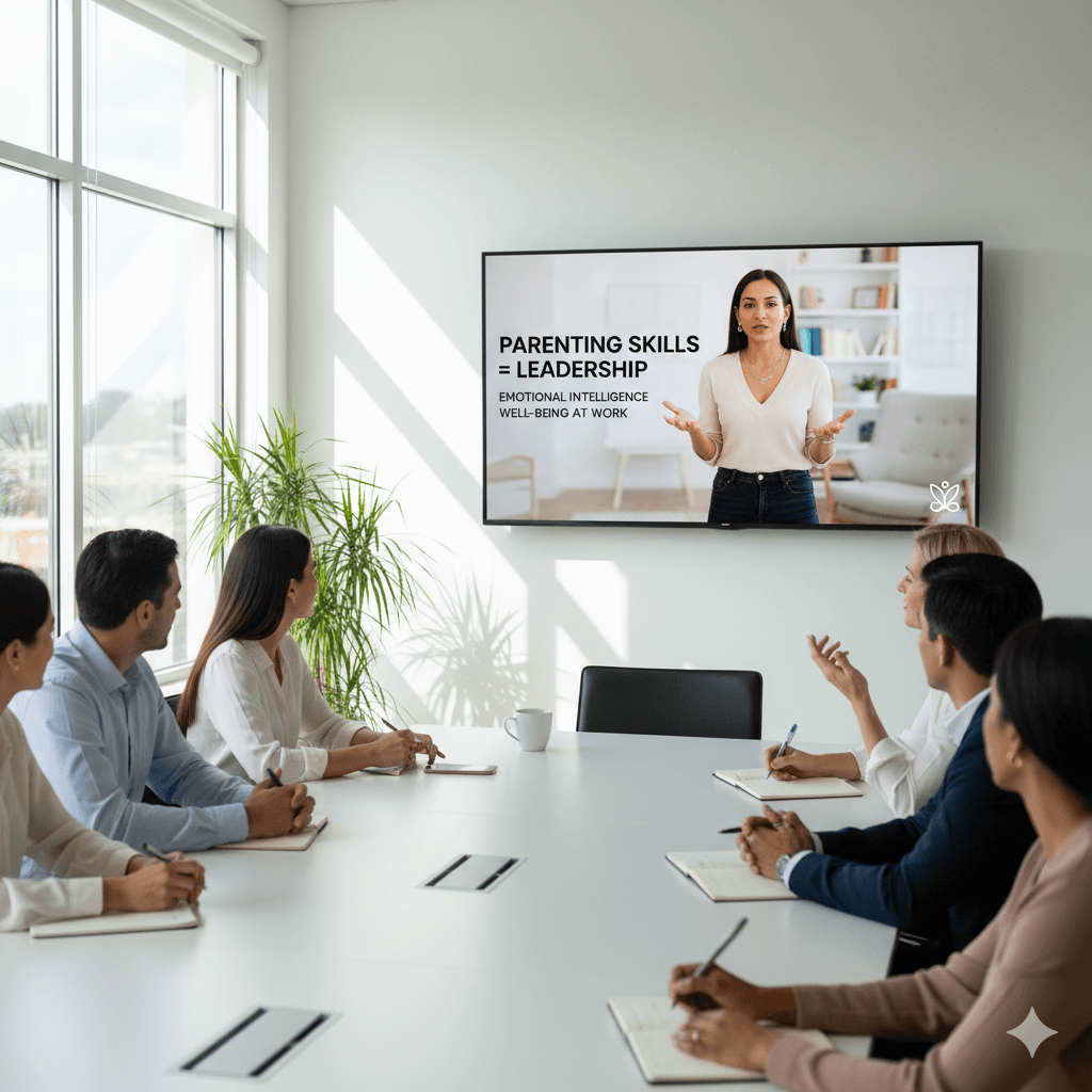J’interviens auprès des entreprises, crèches et institutions pour des conférences, ateliers et formations autour de la parentalité, de la gestion des émotions et de la communication éducative. Des formats sur mesure, ancrés dans la réalité du terrain, pour soutenir les équipes et les familles.
